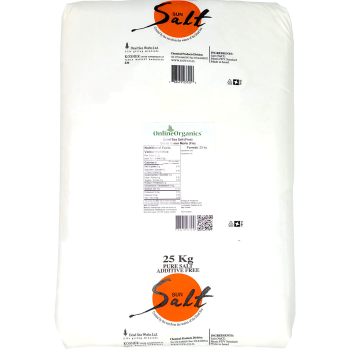 Our fine dead sea salt is produced by evaporating sea water from the dead sea which conserves the trace elements found in sea water such as potassium, iron, and calcium.